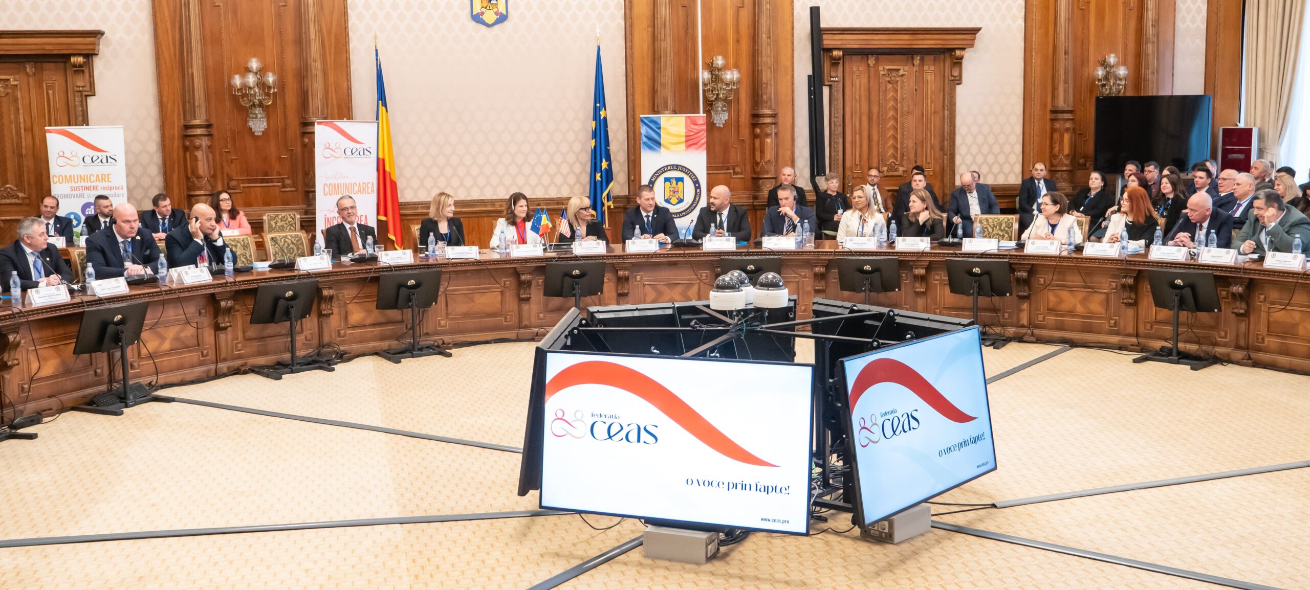 Găzduit de cea mai reprezentativă clădire din România, evenimentul s-a desfășurat într-un format inedit, reunind peste 180 de participanți din țară și străinătate. Din partea Ministerului Justiției, la reuniune a participat doamna Secretar de Stat Roxana Simona Momeu, care a Administrația Națională a Penitenciarelor a fost reprezentată de către domnul chestor de poliție penitenciară dr. Dan Halchin, director general, iar Federația CEAS, de către domnul Alin Pădureanu, președinte.